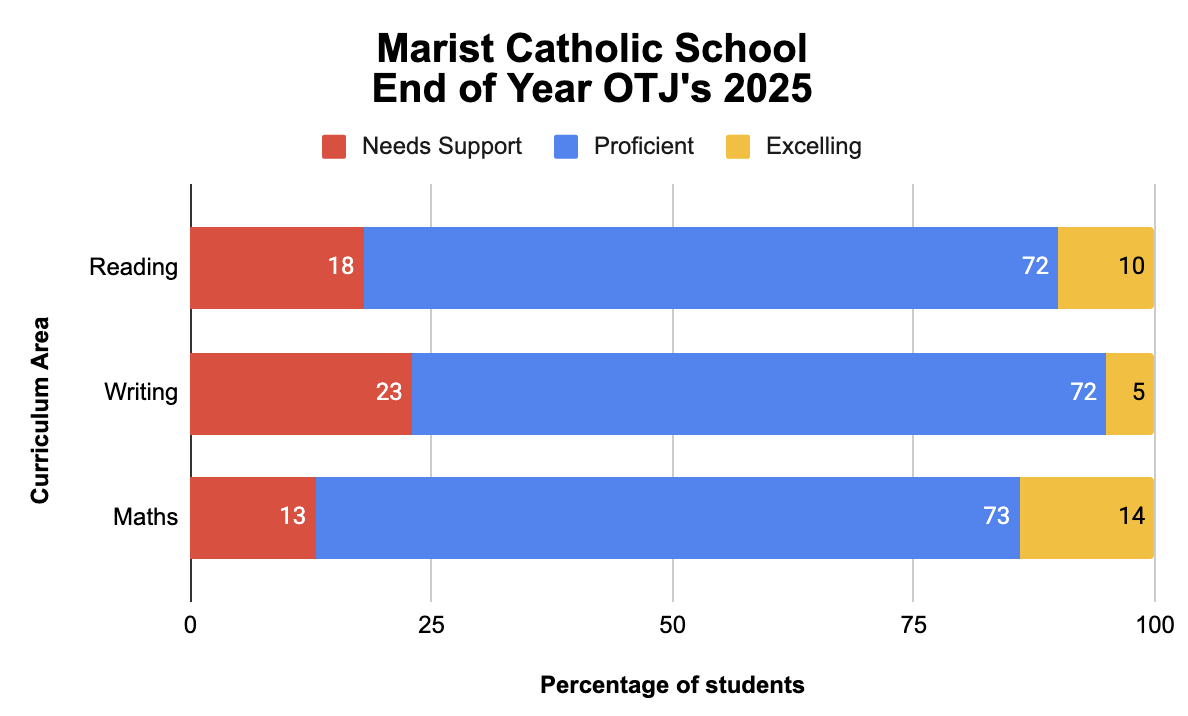 In 2025 we are pleased to say that all students at Marist have made progress throughout the year where we can continue to work on building up the overall achievement to reach our high Marist expectations.